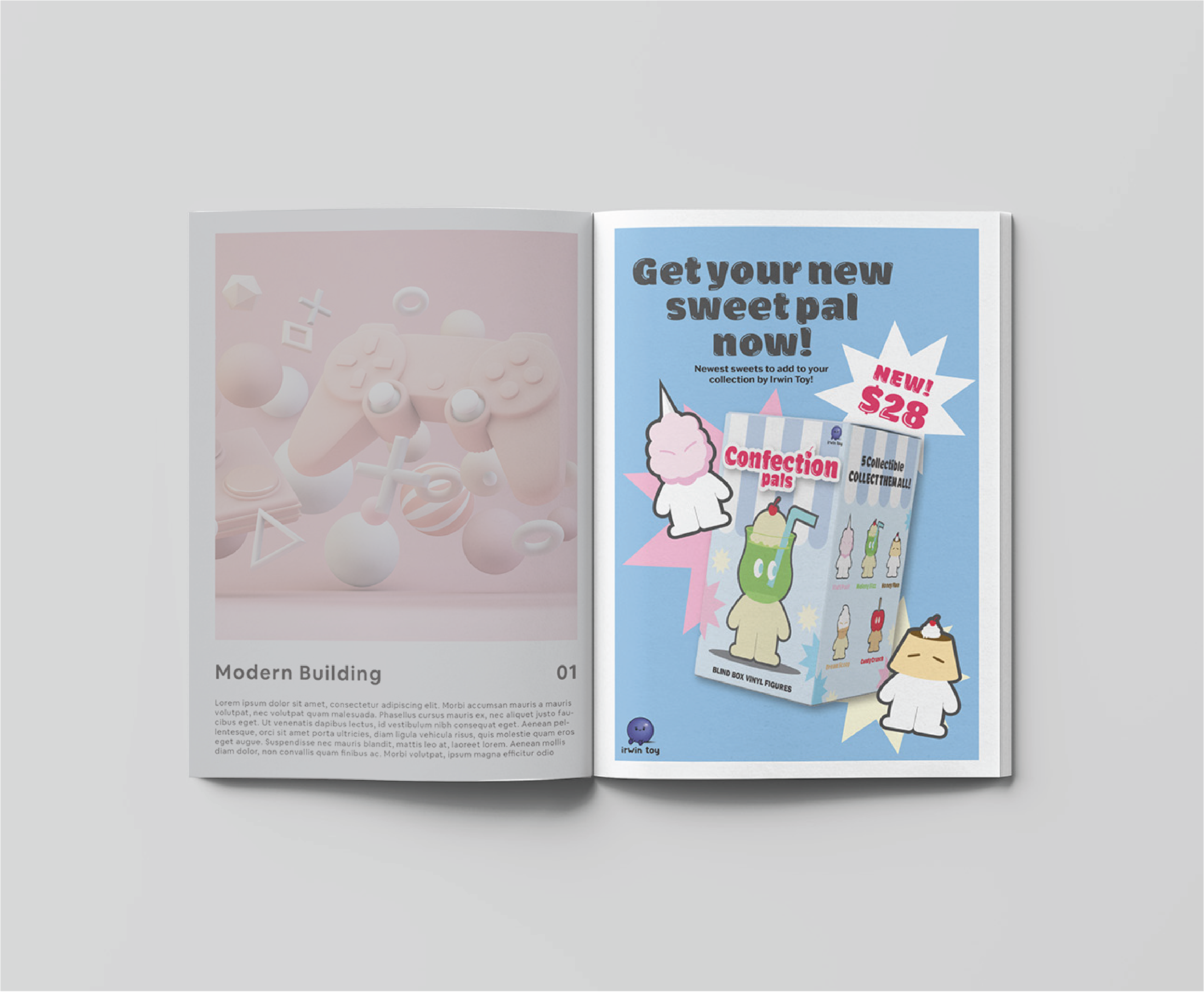 Targeting both children and young adult collectors, the concept taps into the rising blind box trend to encourage repeat purchases and community engagement. Supported by magazine ads, posters, and hero banners, the campaign positions Irwin Toy within the expanding collectible toy market while celebrating its heritage of fun and creativity.