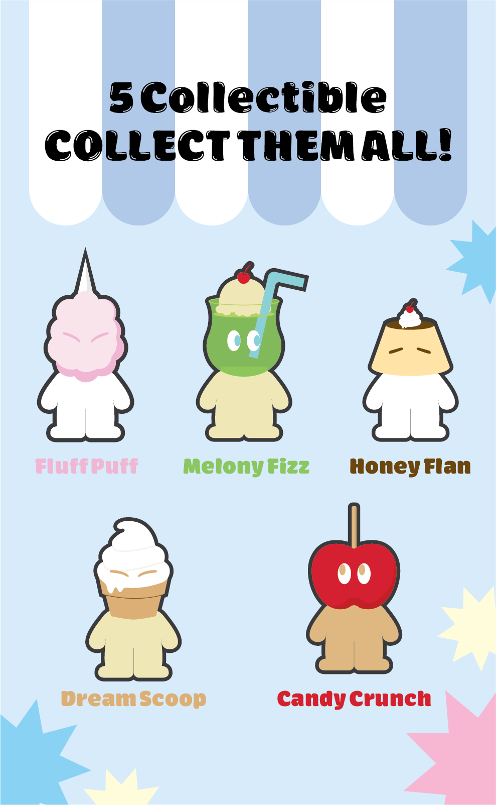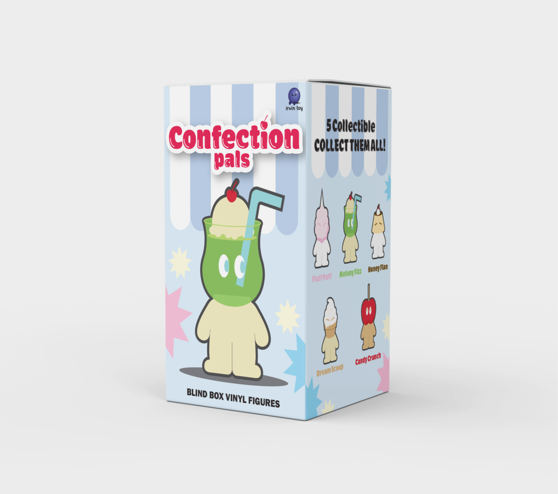 Confection Pals is a proposed blind box collectible line developed for Irwin Toy, blending the brand’s legacy of playful children’s toys with today’s growing fascination for mystery collectibles. Inspired by sweets and confectionery treats, each character combines whimsical design with dessert-themed packaging and a collectible character card.